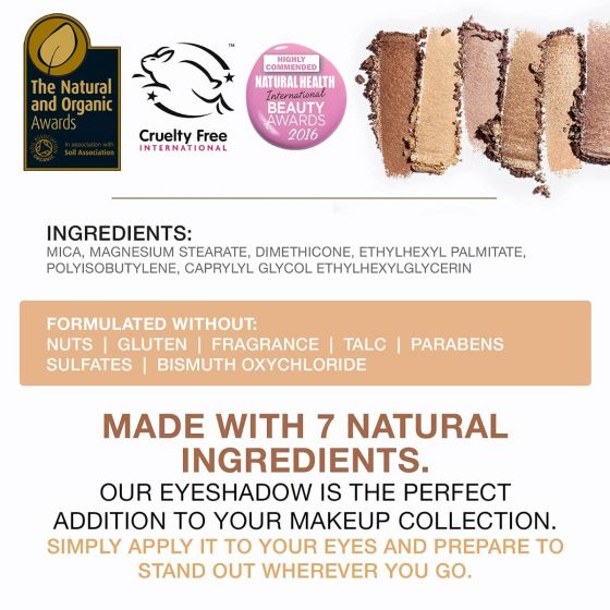 As with all of our makeup, our eyeshadow palettes are made with the safest ingredients, making it non-toxic and paraben free. In addition to being safe for you, it is also 100% cruelty free to protect our little fur buddies.